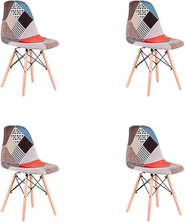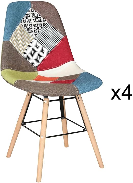 Mobilier Deco Lot De 4 Chaises Scandinave Patchwork Amazon Fr